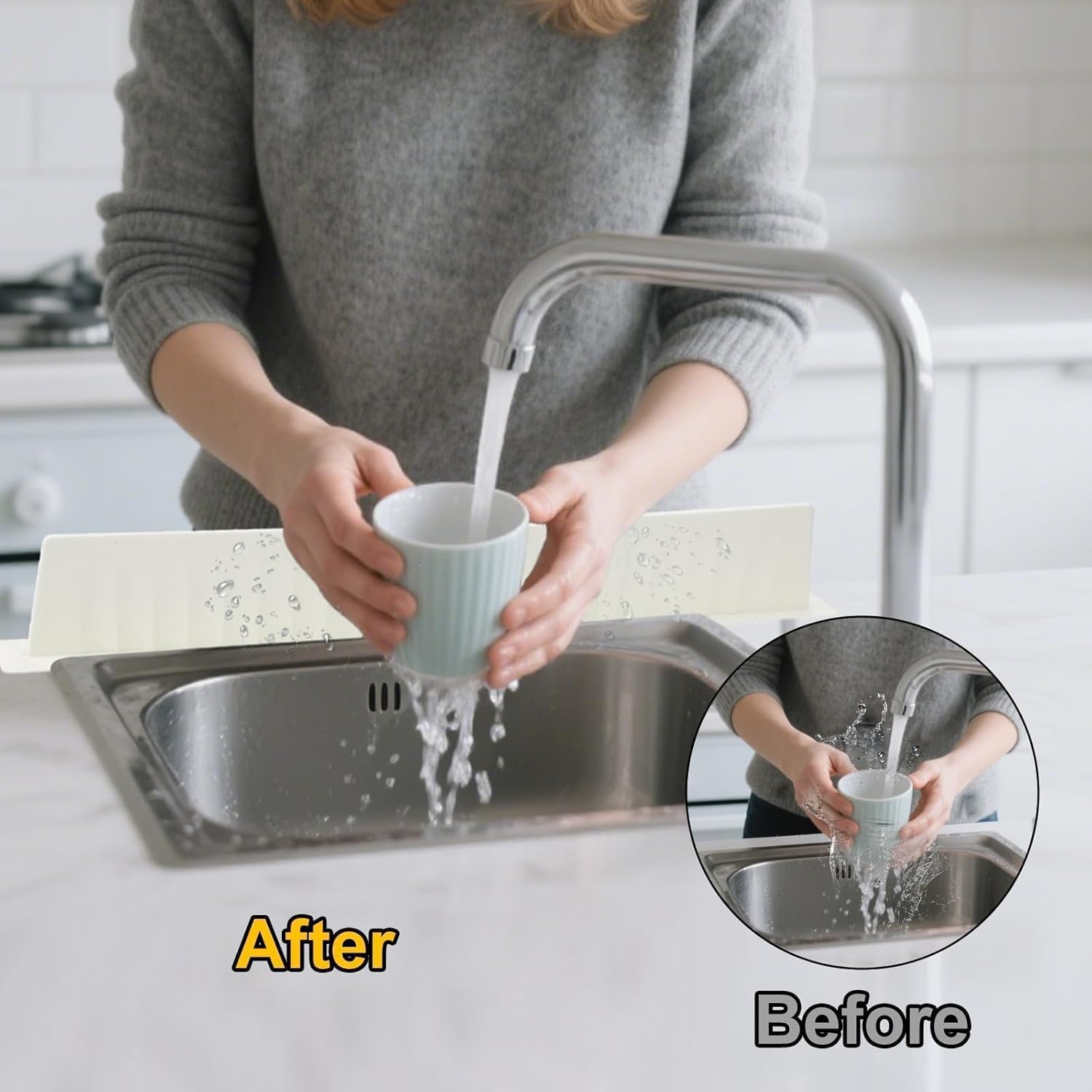 - No More Splashing: Designed to extend over a wider sink area, this sink edge protector for kitchen sink effectively blocks water. Say goodbye to wet aprons or damp sleeves