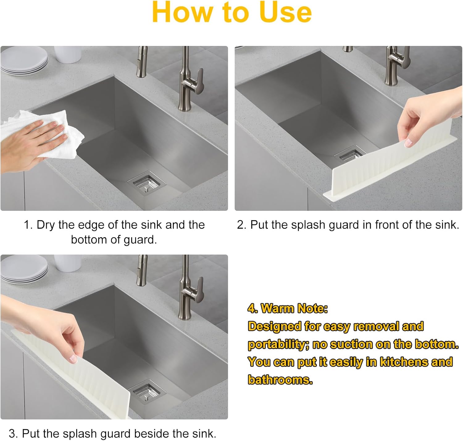 - Versatile Use: Place this kitchen sink splash guard around kitchen or bathroom sinks or tub on 4 sides(front, back, left, right) to block splashes and cut down on cleaning time